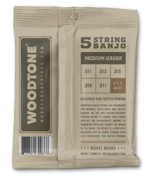 5-String Banjo Strings - Medium Gauge - Nickel Wound Non-Coated